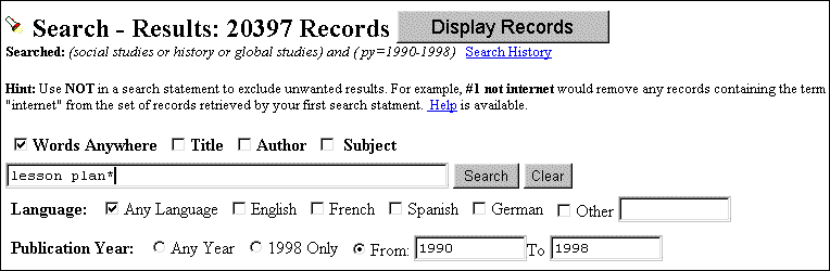Step 8: Refine search (if needed):330 records might be more than you are willing to go through. It might be that you want lesson plans. Do another wide search on "lesson plans."