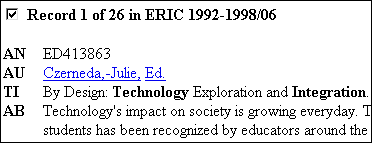 Step 9: Browse records and mark those pertinent to your search.Browse the records, focusing on the article title (TI) and the article's abstract (AB). If the article is appropriate for your needs, put a check in the box. Continue this process for each record.